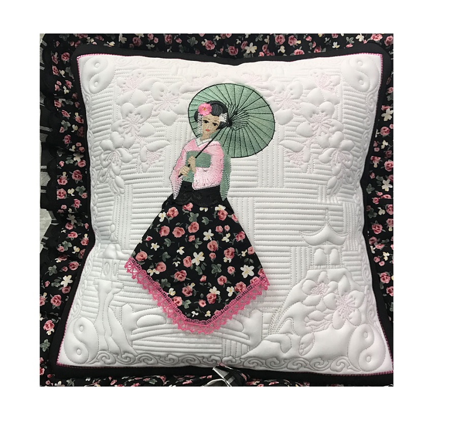 Matriz Bordado Almofada Quilt Linda Geisha