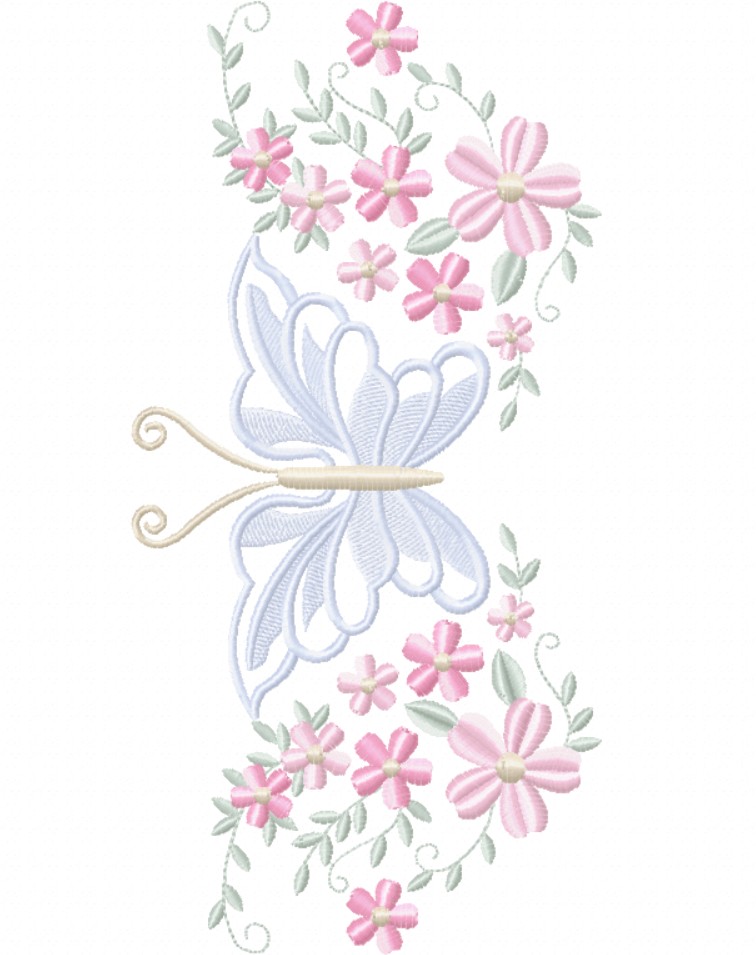 Matriz Bordado Toalha E Lavabo Florzinhas Com Borboleta